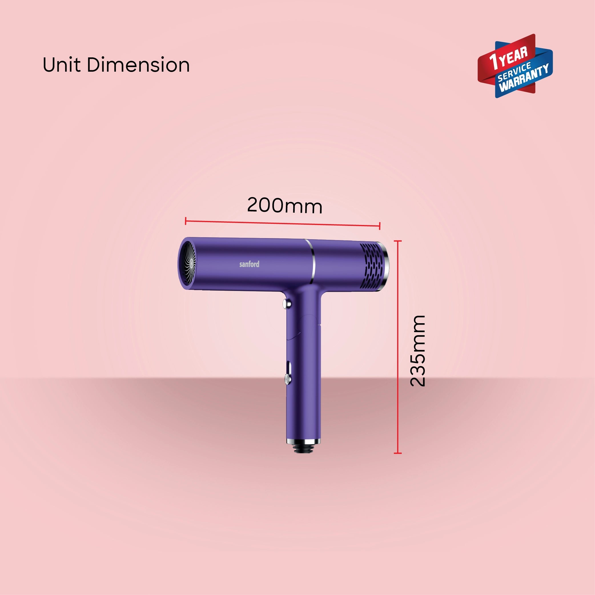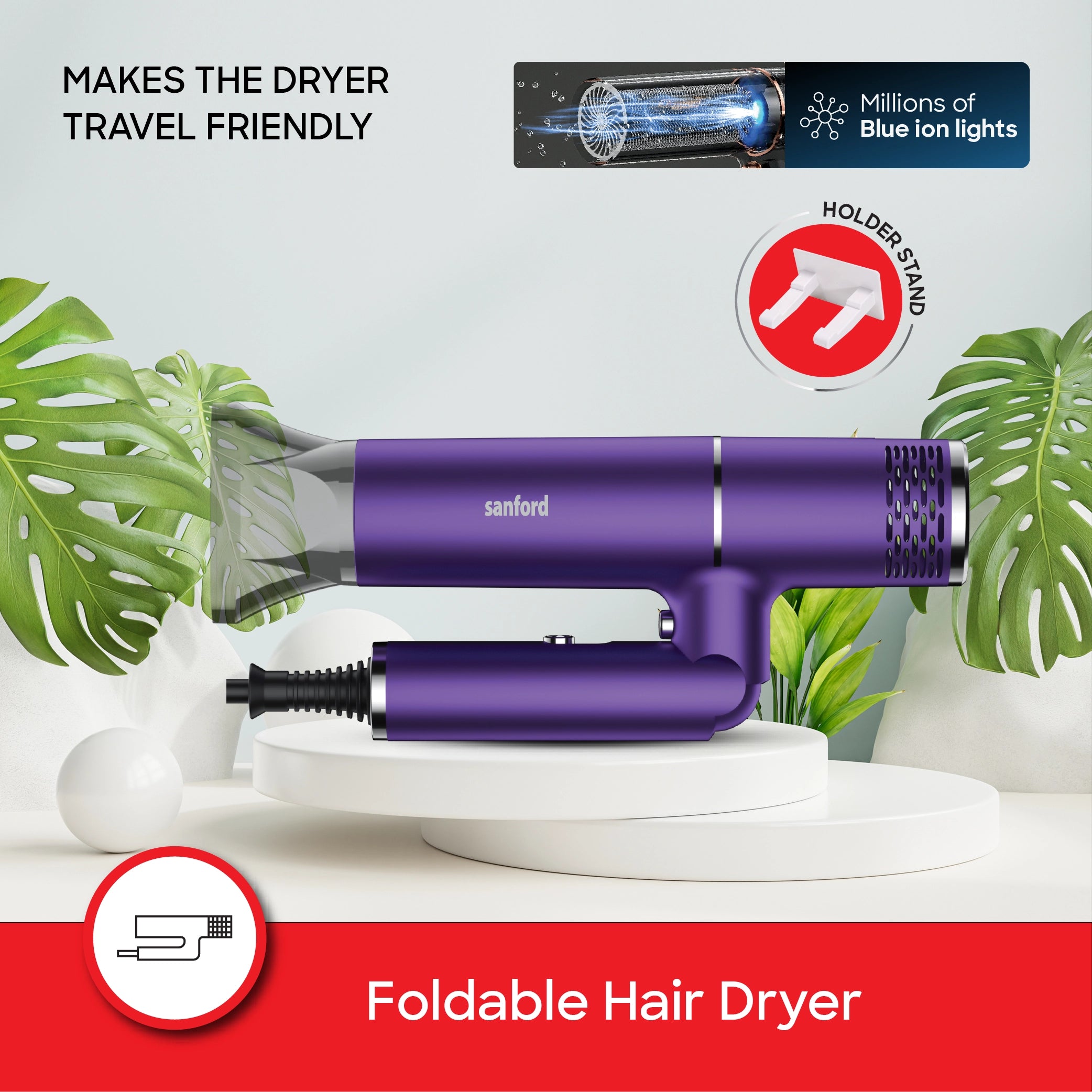 Sanford Hair Dryer With 2200W Power Professional Motor Cool Shot Foldable Design and Concentrator - SF9678HD